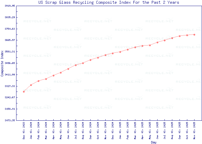 US Scrap Glass Recycling Composite IndexThe US Scrap Glass Recycling Composite Index tracks the changing market prices of glass scrap in United States marketplace. The Index consists of a weighted basket of specific benchmark grades of scrap glass. The Index includes snapshots of 5 viewpoints of market trends : the past 7 days, past 30 days, past 90 days, past 1 year and past 2 years.The Composite Index is updated daily before noon EST and tracks 7 days per week. Transaction activity on the weekends is typically lighter; it is not uncommon to see no change reflected in the Index during this time period. The Composite Index is derived from current spot market prices originating from the Recycler's Exchange . This source of data is proprietary in nature and may not reflect external markets trends. To keep current with the market trends, you may visit this website. The overview of the Composite Index is a free service.